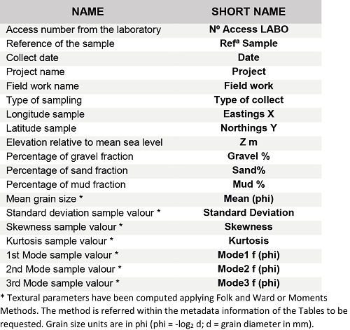 Samples collected within the central sector. Every sample includes available textural information, geographic location, project reference, etc. available within the attribute table.